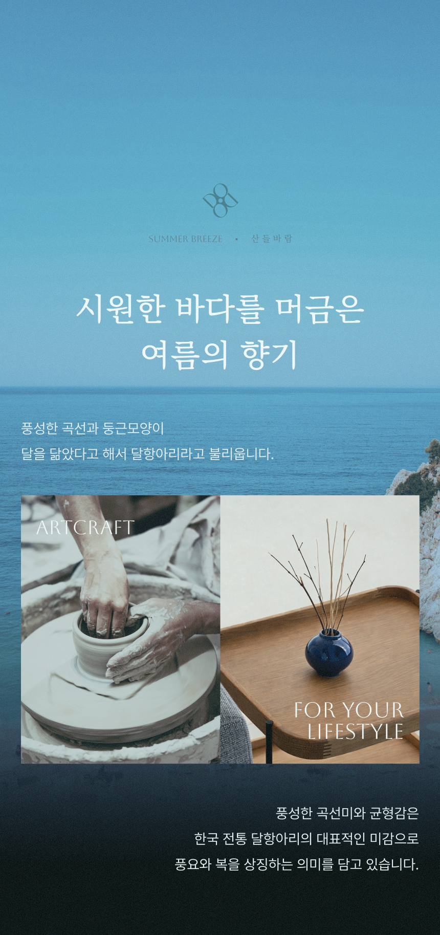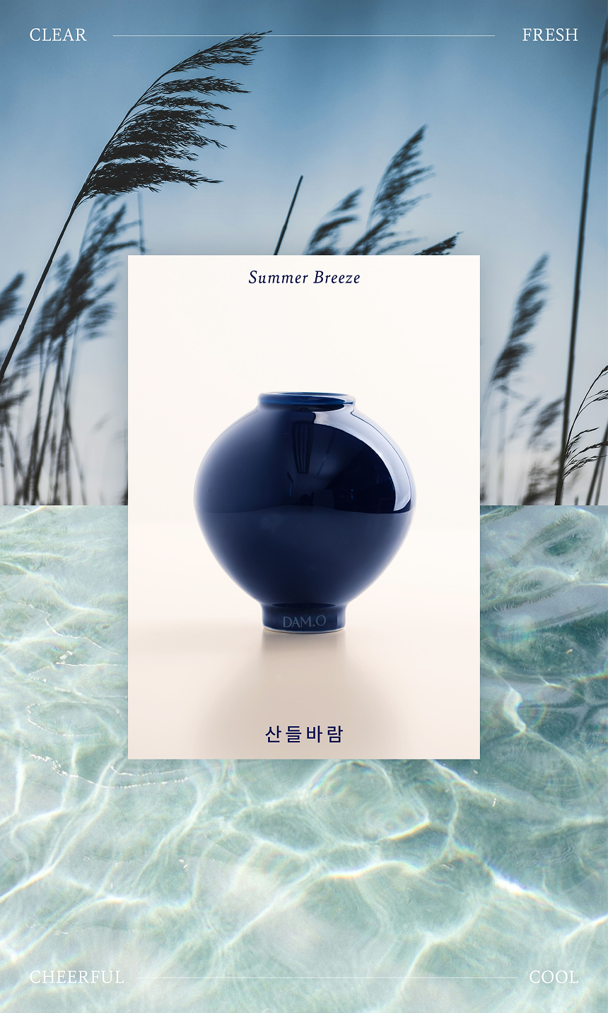 청량한 오방색 파랑을 담은 달항아리, 산들바람향은