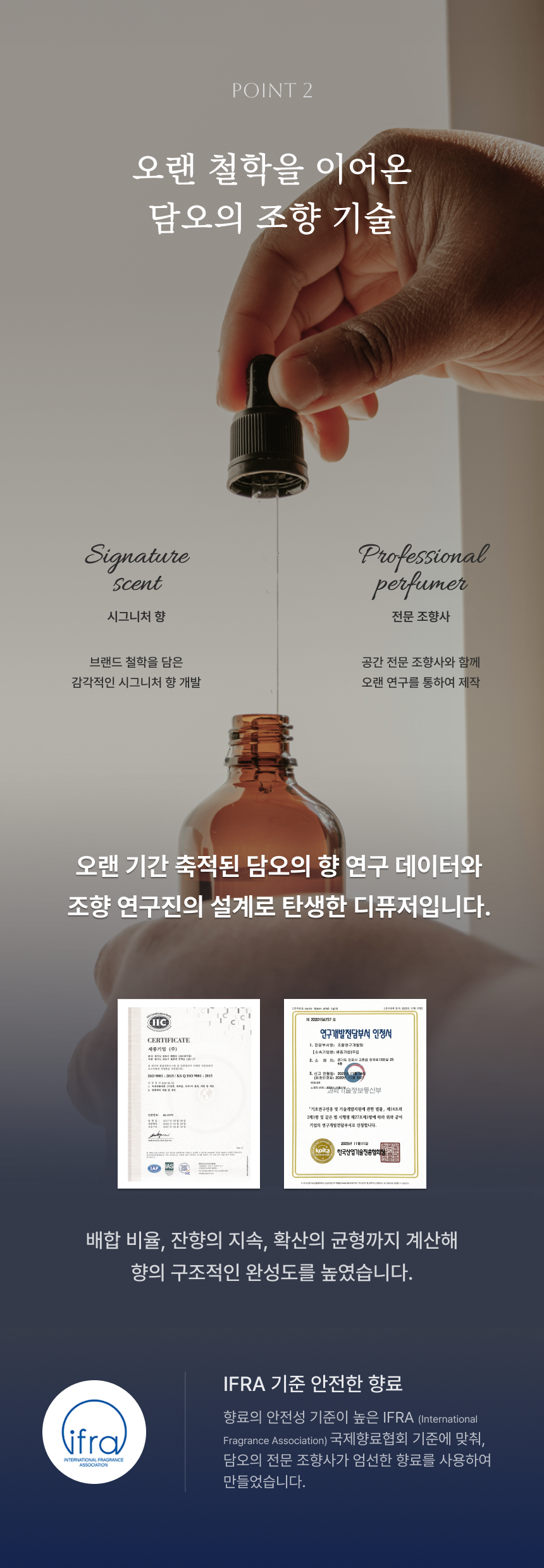마치 숲길을 지나온 바람처럼 가볍고 투명한 잔향을 남깁니다.