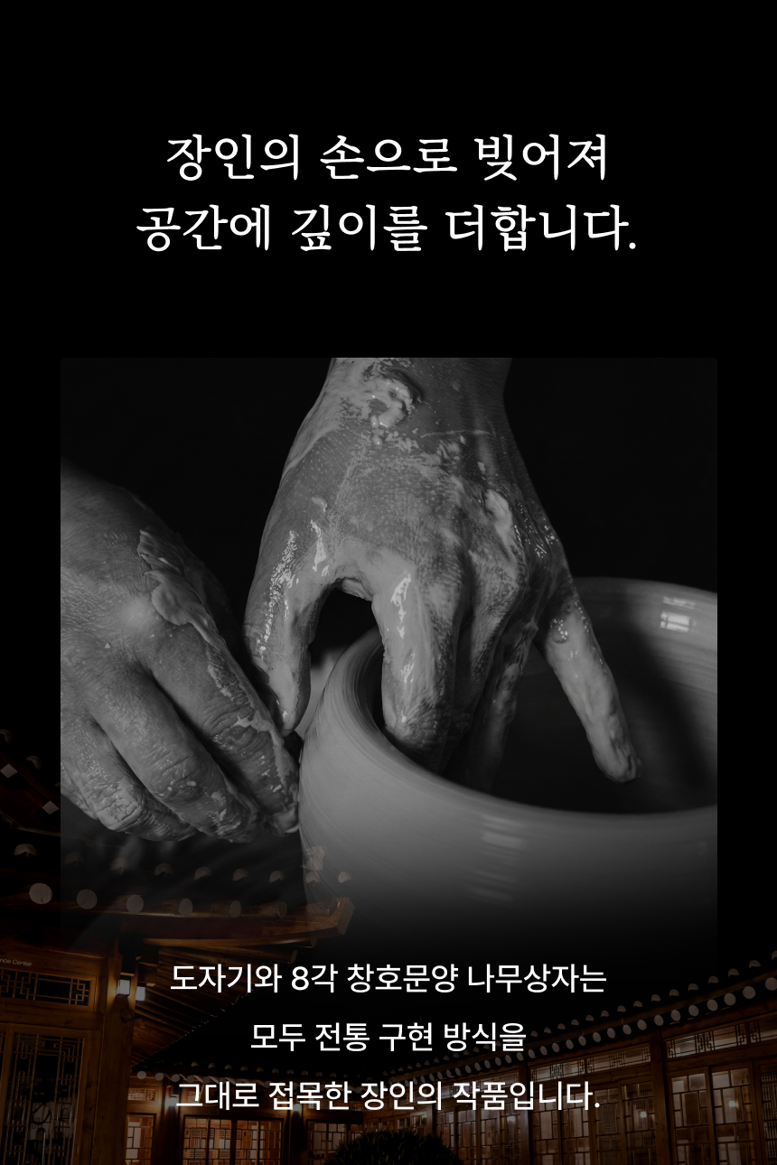 한옥의 깊은 숨결을 닮은 은은한 목재 향이 공간을 따뜻하게 감싸고